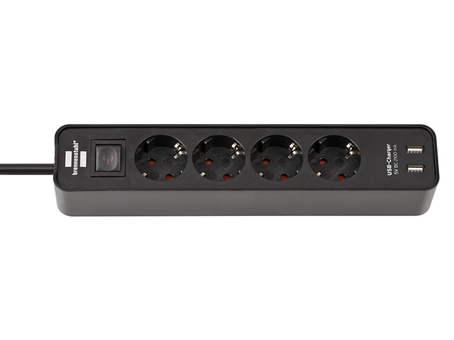 Удлинитель 1.5м (4 роз., 3.3кВт, с/з, 2 USB порта, выкл., ПВС) черный Brennenstuhl Eco-Line (провод 3х1,5мм2; сила тока 16А; 2 USB порта, с/з - с зазе
