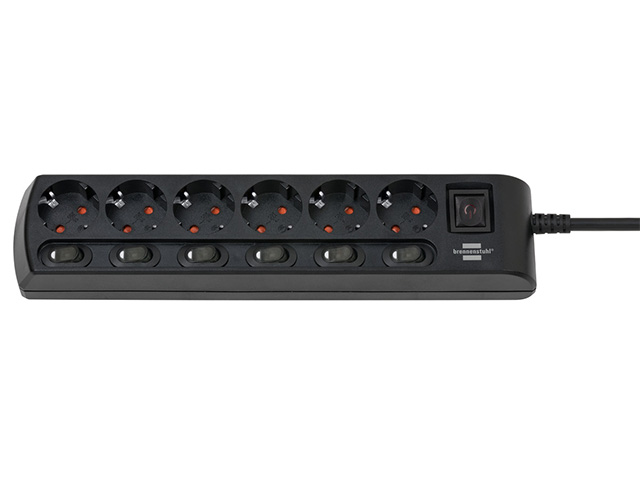 Удлинитель 2м (6 роз., 3.3кВт, с/з, 6+1 выкл., ПВС) черный Brennenstuhl (провод 3х1,5мм2; сила тока 16А; с/з - с заземляющим контактом)