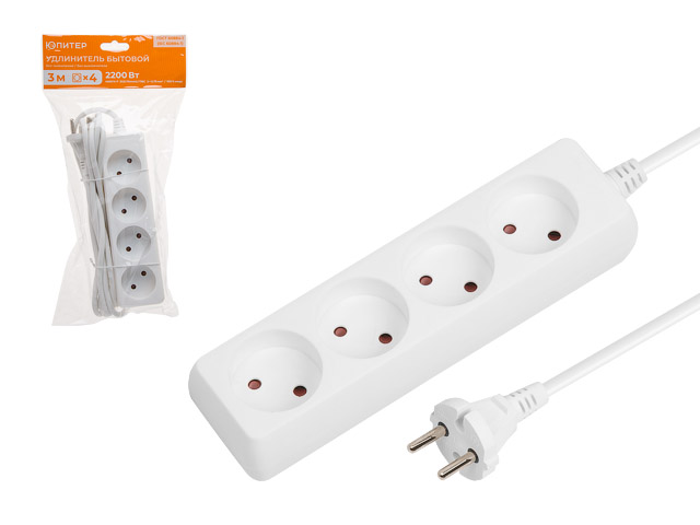 Удлинитель 3м (4 роз., 2,2кВт, б/з, ПВС 2х0,75) Юпитер (ЮПИТЕР)