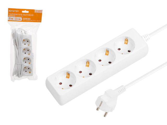 Удлинитель 5м (4 роз., 2,2кВт, с/з, ПВС 3х0,75) Юпитер (ЮПИТЕР)
