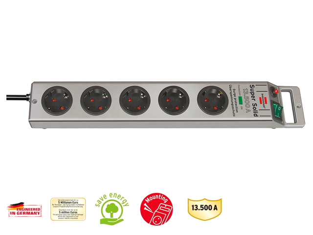 Чрезвычайно крепкие разъемы удлинителя Super-Solid защищают подключенную технику от скачков электроэнергии.