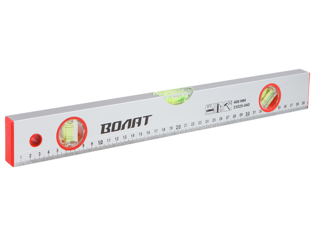 Уровень брусковый ВОЛАТ применяется для контроля горизонтальности и вертикальности поверхностей. Уровень оснащен тремя ампулами (горизонтальная, вертикальная, под углом 45°).