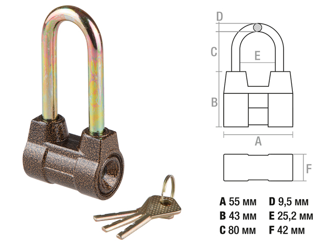 Габариты мм: A 55, B 43, C 80, D 9,5 E25,2 F42