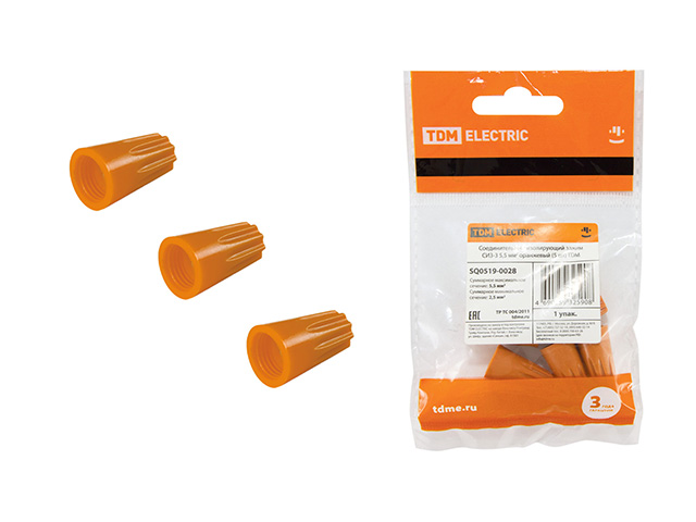Зажим соединительный изолирующий СИЗ-3 5,5 мм2 оранжевый (5 шт) TDM