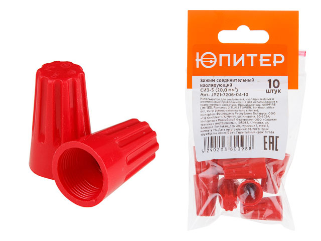 Зажим соединительный изолирующий СИЗ-5 (20,0 мм2) (10 шт) Юпитер (красный) (ЮПИТЕР)